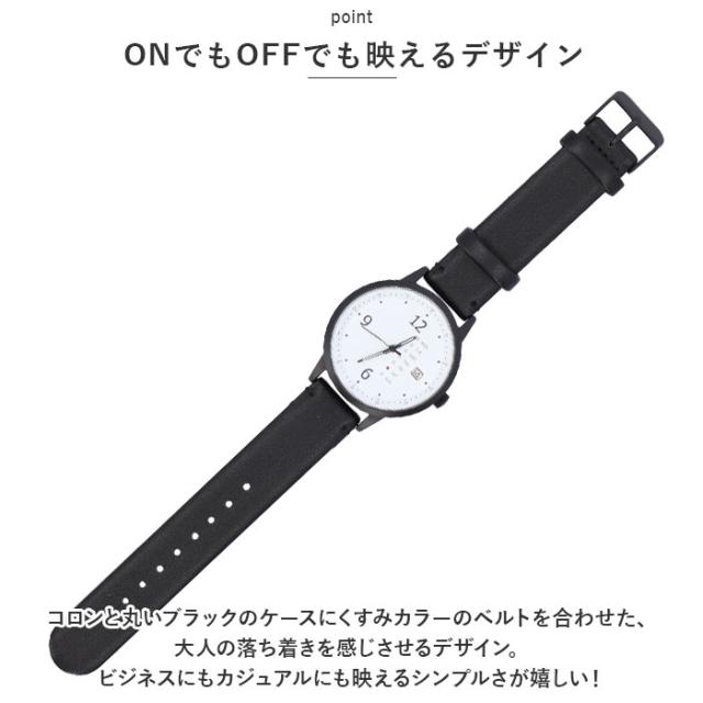 | 商品説明 | ・シンプルで大きめの文字盤が、手元の素敵なアクセントに。見やすいカレンダー機能付き「腕時計 ドリエ」が新登場。 【ONでもOFFでも映えるデザイン】 ・コロンと丸いブラックのケースにくすみカラーのベルトを合わせた、大人の落ち着きを感じさせるデザイン。ビジネスにもカジュアルにも映えるシンプルさが嬉しい! 【アナログウォッチフェイス】 ・ホワイトの文字盤にインデックスバーを控えめに並べたシンプルなアナログウォッチフェイス。ベゼル内側の立体感のある「分数・秒数スケール」が個性的。 【直観的に見やすいカレンダー付き】 ・その日の予定がスムーズに確認できる、日付・曜日カレンダー付き。縦一列に並んだ曜日表記に小さな赤い丸が灯るから、直観的で見やすいのがポイント! 【日本製ムーブメント】 ・静かに正確な時を刻む。確かな性能を誇る、安心と信頼の日本製高性能ムーブメントを採用。 【ユニセックスデザイン】 ・くすみカラーのフェイクレザーベルトが手首に優しく馴染む・・・。着用する人の性別やファッションを選ばない、ボーダーレスなカラーとデザインも魅力のひとつ。 |