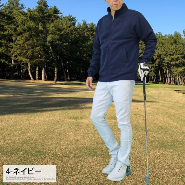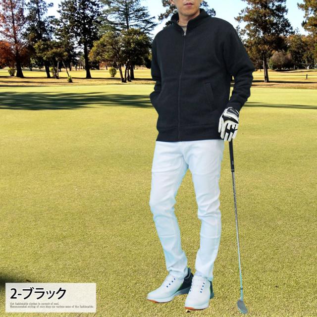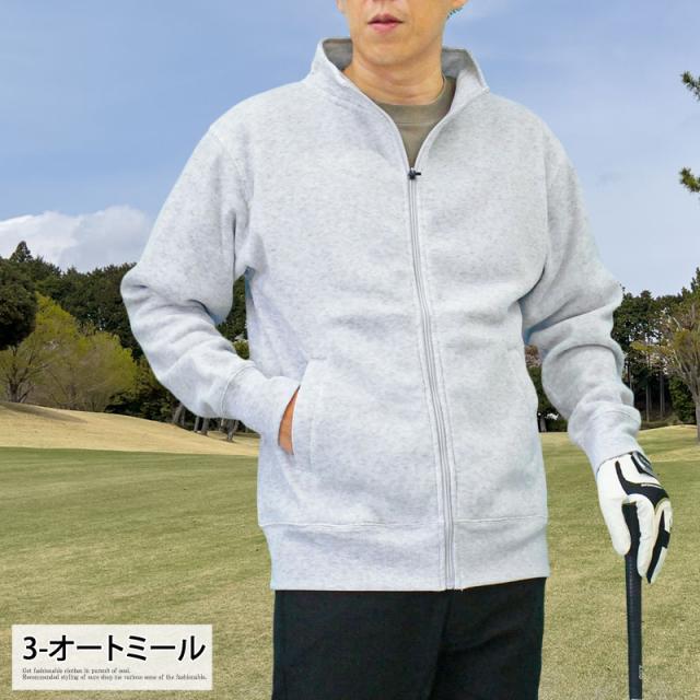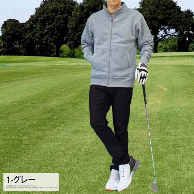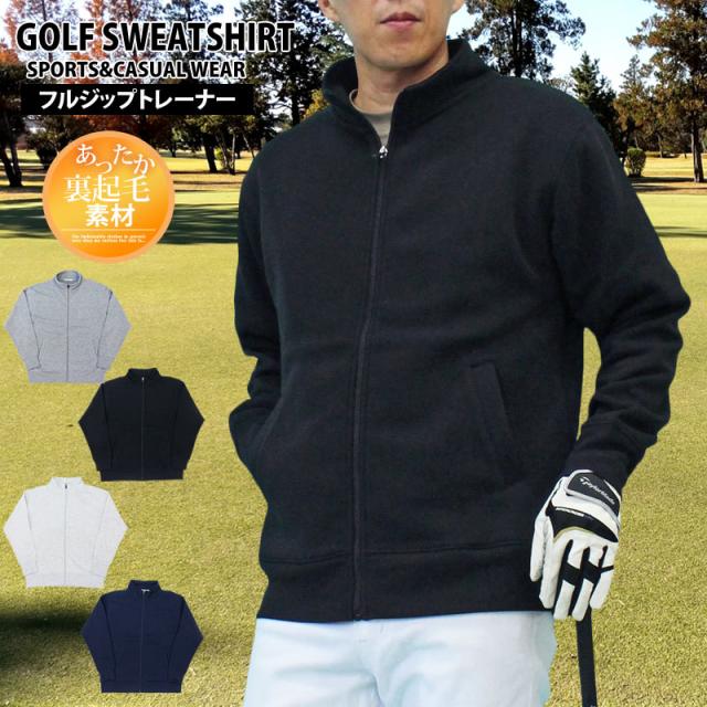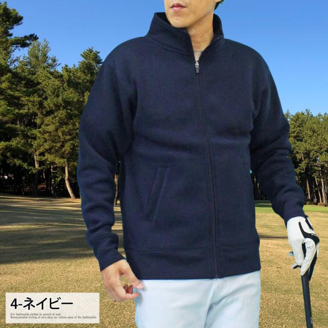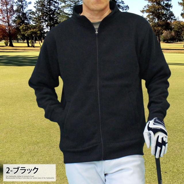 送料無料 ゴルフウェア メンズ ジップアップトレーナー 裏起毛 スウェット トップス スタンドネック ジャケット ブルゾン 秋冬