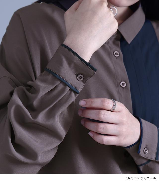 レディース トップス ブラウス シャツ ボタンシャツ 前開きシャツ 襟付きシャツ 羽織 襟付き 長袖 タック ヨーク プリーツ 切り替え アシンメトリー アシメ スリット パイピング 配色 無地 おうちで洗える 秋冬春 女子会 カジュアル お買い物 お出掛け 旅行 大人女子 大人可愛い お洒落可愛い モード シンプル ナチュラル ニュアンス ラフ Sサイズ Mサイズ Lサイズ LLサイズ 3Lサイズ XLサイズ フリーサイズ ぽっちゃり 体型カバー 大きいサイズ 10代 20代 30代 40代 50代 60代 kOhAKU コハク ブルー 青 レッド 赤 グレー 灰色 チャコールグレー チャコール ブラック 黒 バイカラー 【トップス】[ID]tkk0070