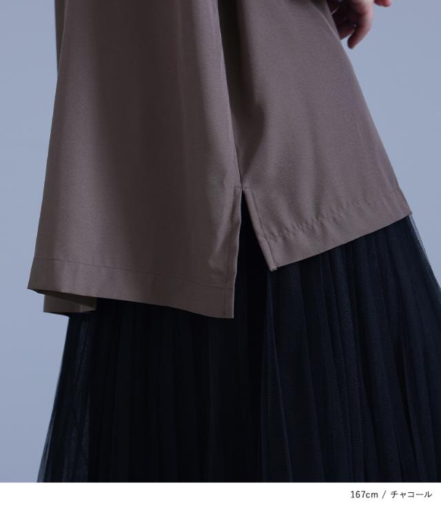 | staff:H/156.7cm B98 W84 H107 【普段着用】 トップス: L/LL ボトムス: L/LL | 【フリーサイズ】 袖丈:手の甲にかかる位 着丈:太もも真ん中位 腕周り:ゆったり バスト:ゆったり 全体:ゆったり さらっと軽い着心地で、楽に着られました。 |