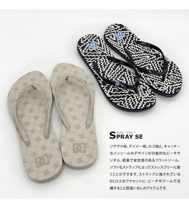 ディーシー ビーチサンダル レディース おしゃれ ぺたんこ 歩きやすい サンダル トングサンダル ビーサン クッション 夏 街 タウン 海 川 プール 水遊び リゾート 大人 カジュアル かわいい フラットソール 黒 ブラック クレイ グレー SPRAY SE DW231015
