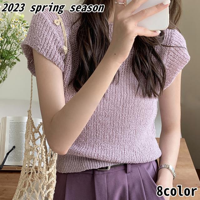 半袖 ニット 春 夏 レディース シンプル タイト オフィスカジュアル / マシュマロタッチ サマーニット半袖トップス