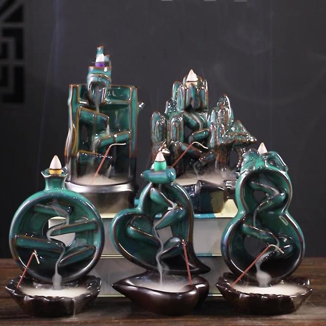 お香立て 倒流香炉 陶器 癒し香炉 陶芸 倒流香60粒付き 高山流水