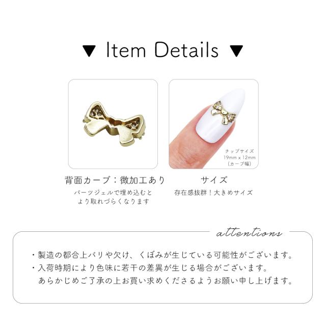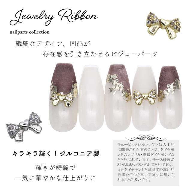 ネイルパーツ ジルコニア製 ジュエリーリボンパーツ [ゴールド/シルバー] 全2色 2個入り