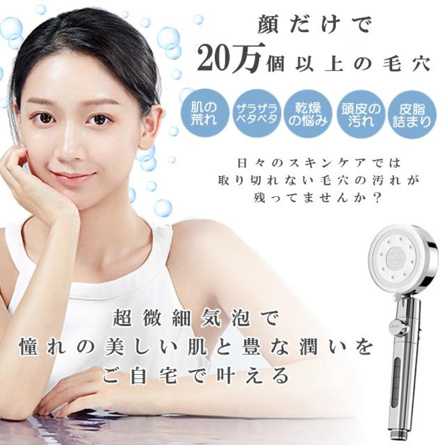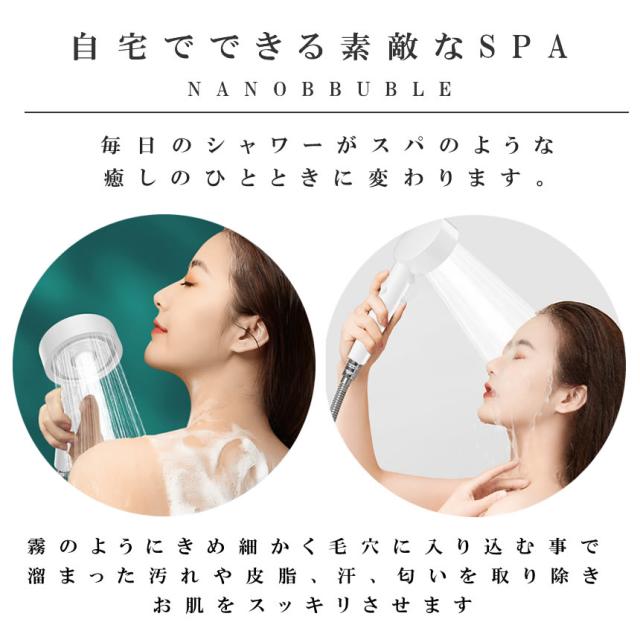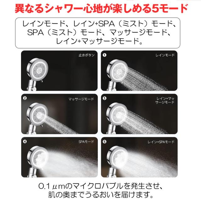 シャワーヘッド 節水 ミスト 塩素 除去 マイクロナノバブル ナノバブル 水流 高水圧 手元止水 手元スイッチ 5段階 モード 水圧調整 浄水 シャワー アダプター付き 汎用 G1/2 取付簡単 美容 節水シャワーヘッド 美肌 保湿 お風呂