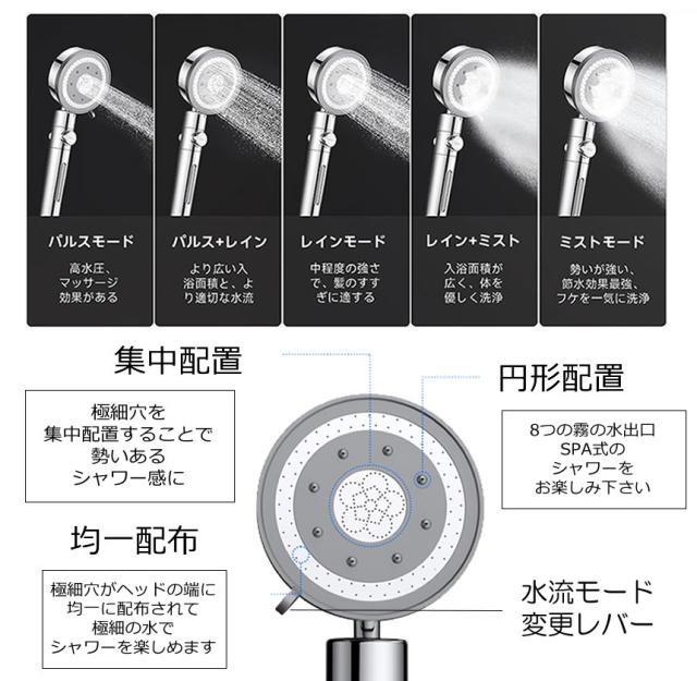 :レインモード、レイン+SPAモード、SPAモード、マクサージモード、レイン+マッサージモード。