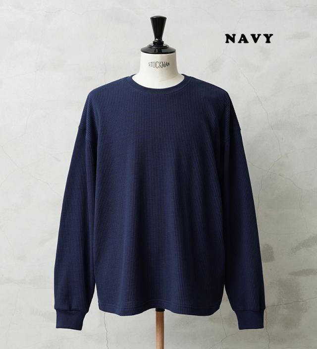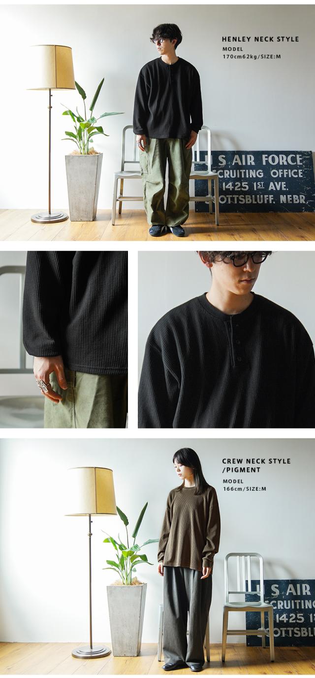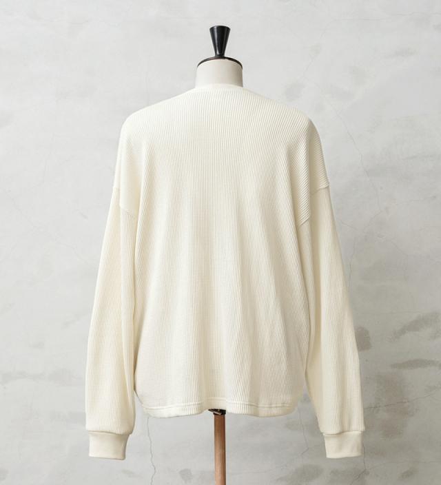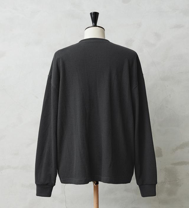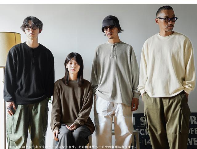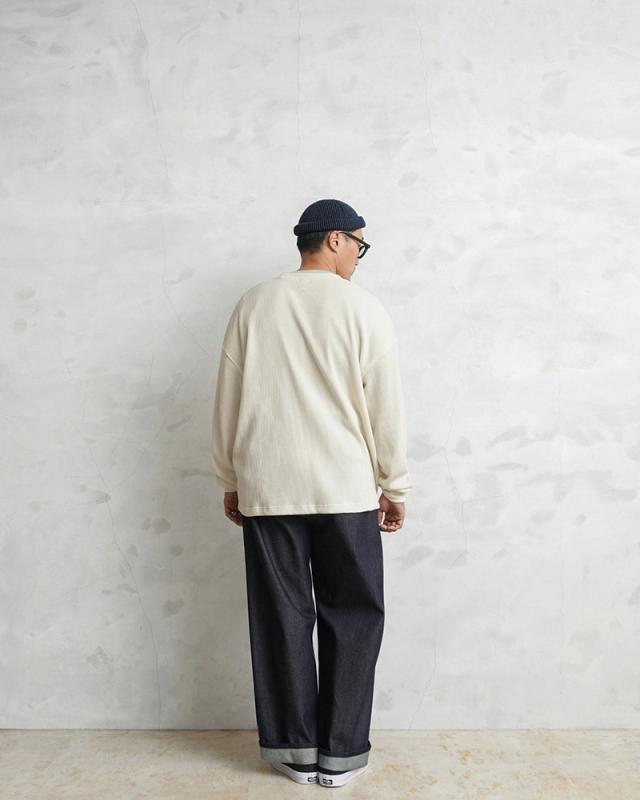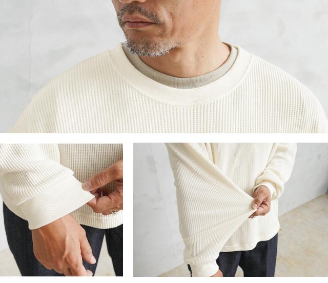 ミリタリーのサーマルと言えばハニカムというイメージですが、今回はあえて様々なアイテムと合わせやすいようワッフル生地を採用。 ワッフルのゲージも一般的なものよりもわずかに目を粗くすることでより立体的でカジュアルな印象に。