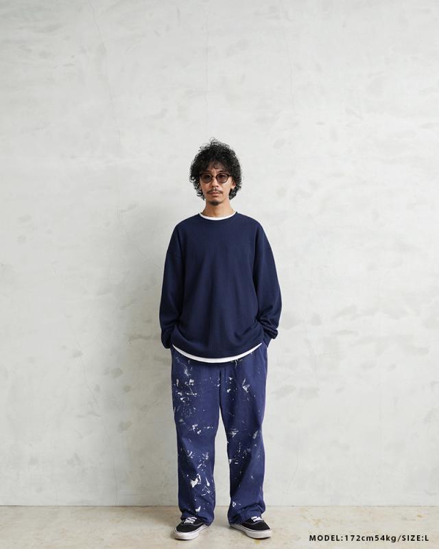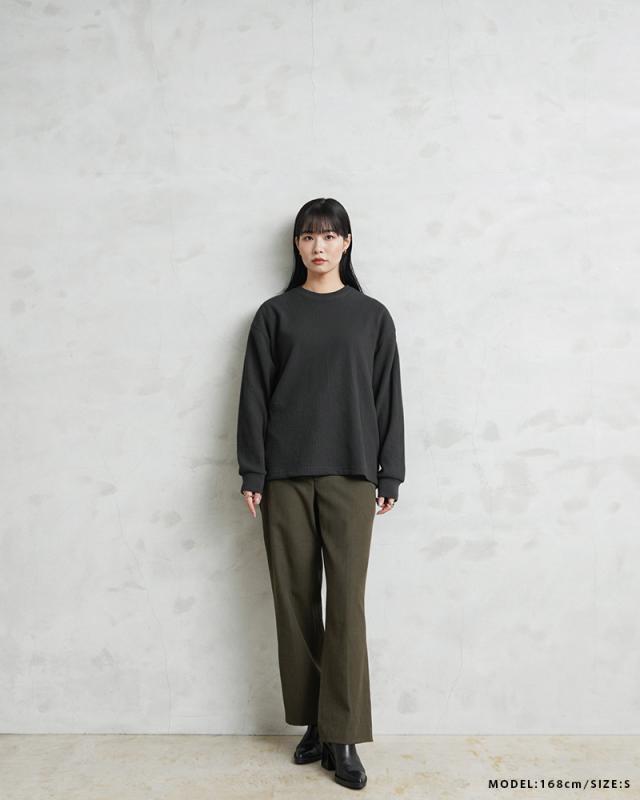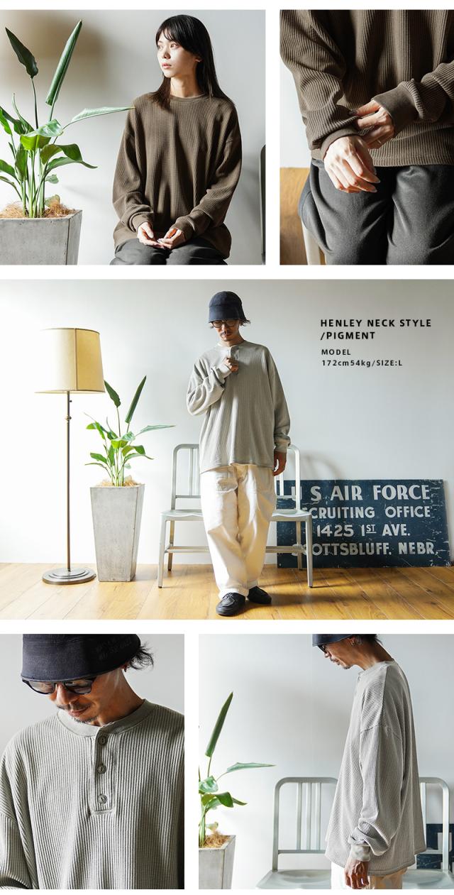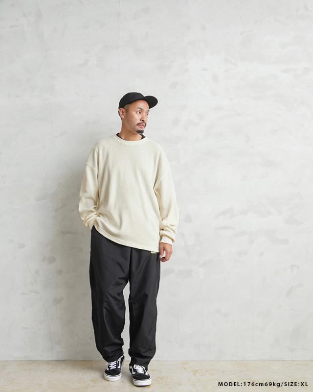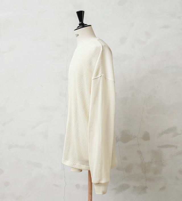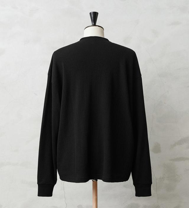 ミリタリーのサーマルと言えばハニカムというイメージですが、今回はあえて様々なアイテムと合わせやすいようワッフル生地を採用。 ワッフルのゲージも一般的なものよりもわずかに目を粗くすることでより立体的でカジュアルな印象に。