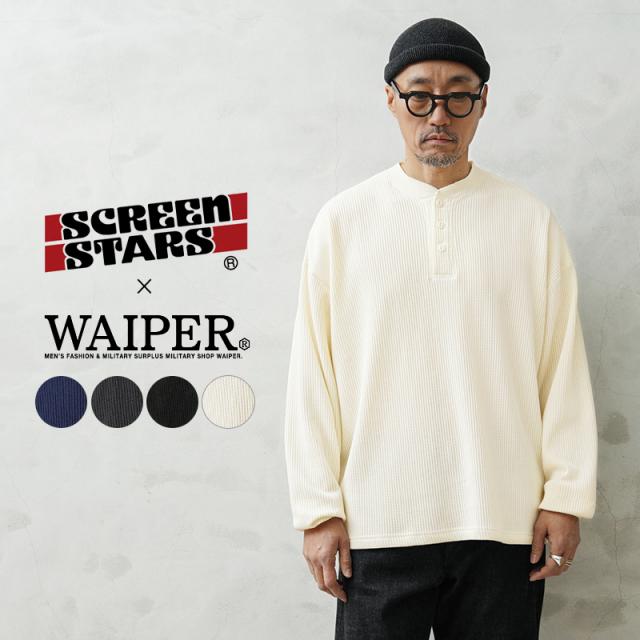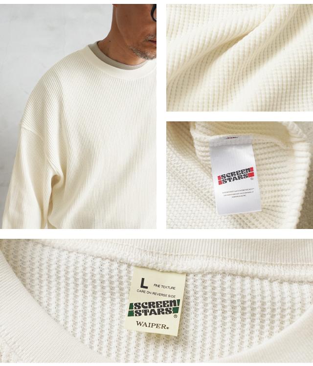 SCREEN STARS×WAIPER 2523-455WP L/S クルーネック サーマル Tシャツ【Cx】【T】|メンズ トップス 長袖 ワッフル ロングTシャツ 無地 シンプル 防寒 保温 大きいサイズ ビッグシルエット ブランド おしゃれ