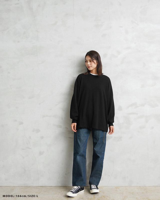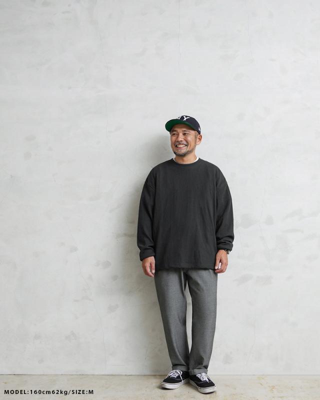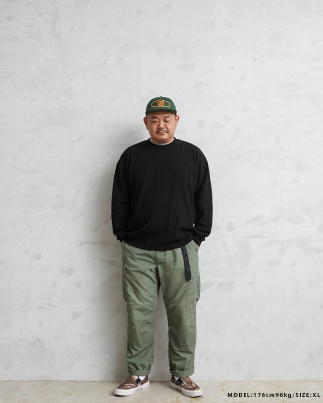 身幅・アームホールにゆとりを持たせた絶妙なボックスシルエットは、着用時のストレスがなく見た目の印象も程よくルーズで、カーゴパンツ・デニム・スラックスなどあらゆるボトムスに合わせやすい1枚となっております。