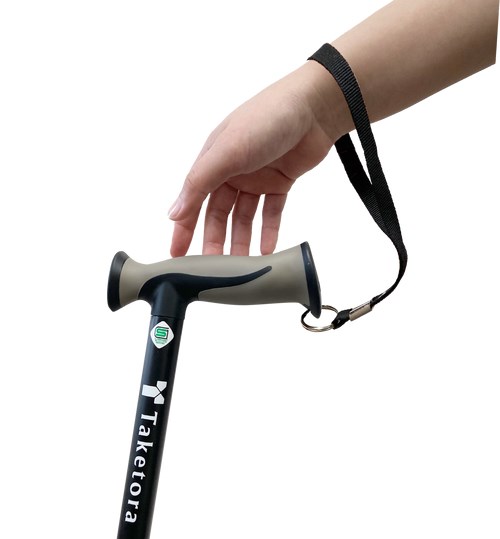 バンブーステッキ ワイド ブラック 杖 つえ ワイドグリップ ストラップ付 杖先ゴム CP-3355(代引不可)【送料無料】