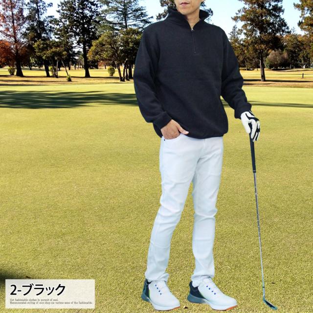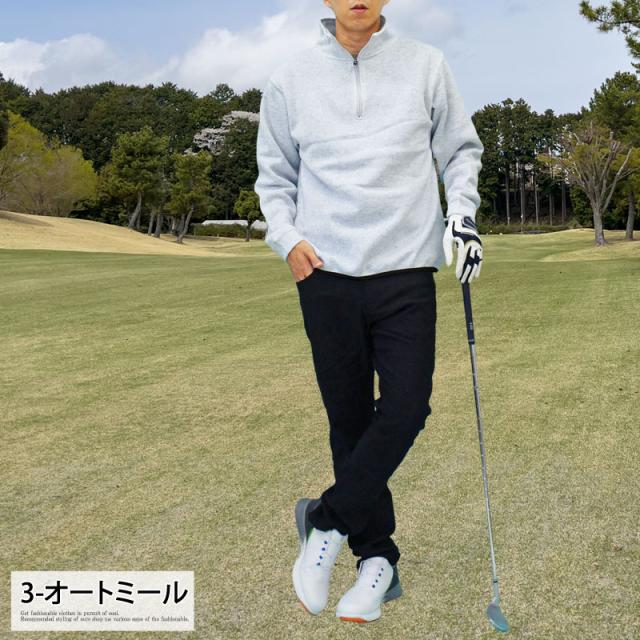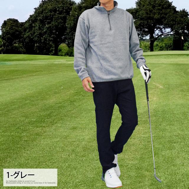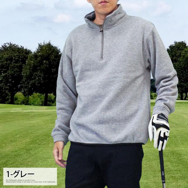 送料無料 ゴルフウェア メンズ ゴルフ トレーナー 裏起毛 スウェット ハーフジップ トップス ハイネック プルオーバー 秋冬