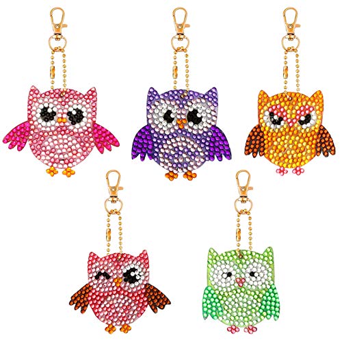 SUNNYCLUE 5個 ダイヤモンドアート 梟 チャーム ふくろう ダイヤモンド キーホルダー ダイヤモンドビーズ アート ダイヤモンドビーズ絵画 ダイヤモンドペイント ペインティン