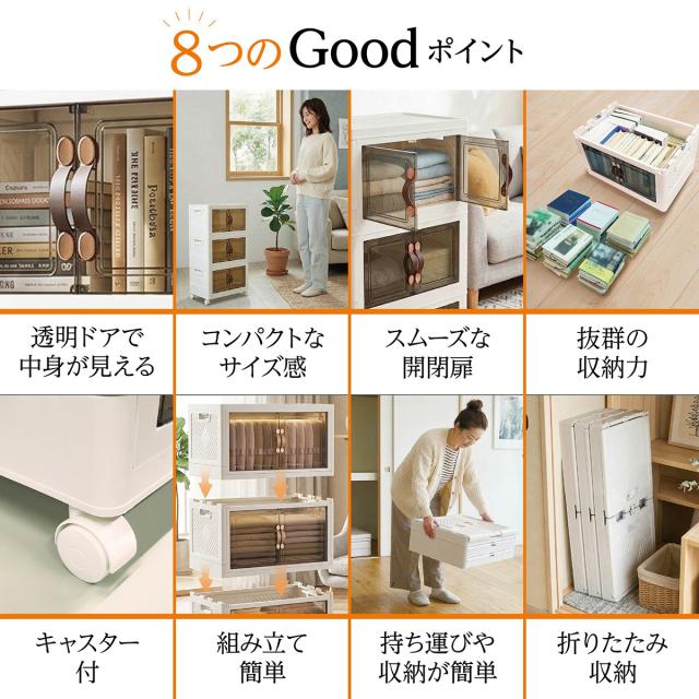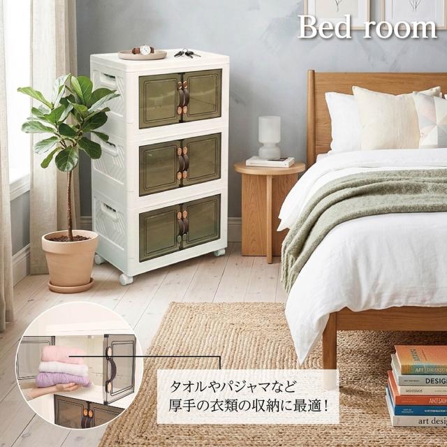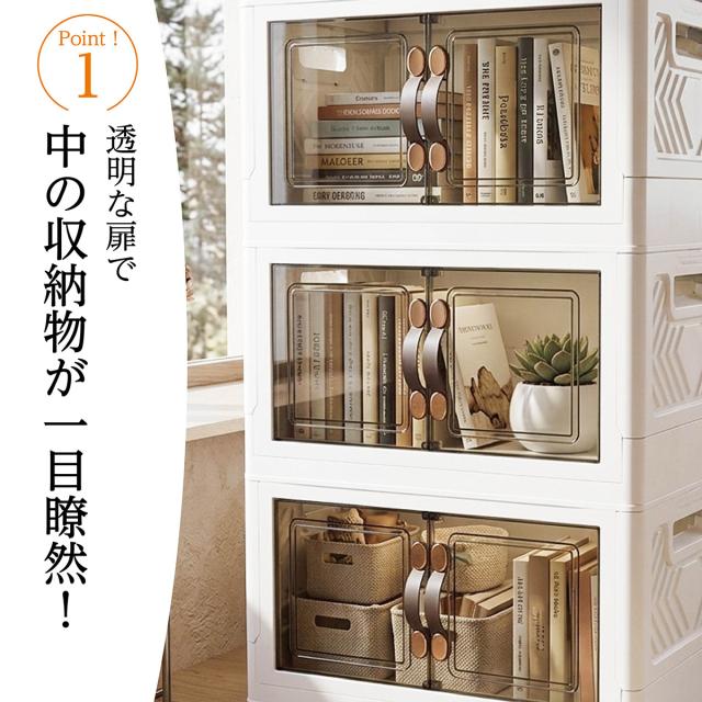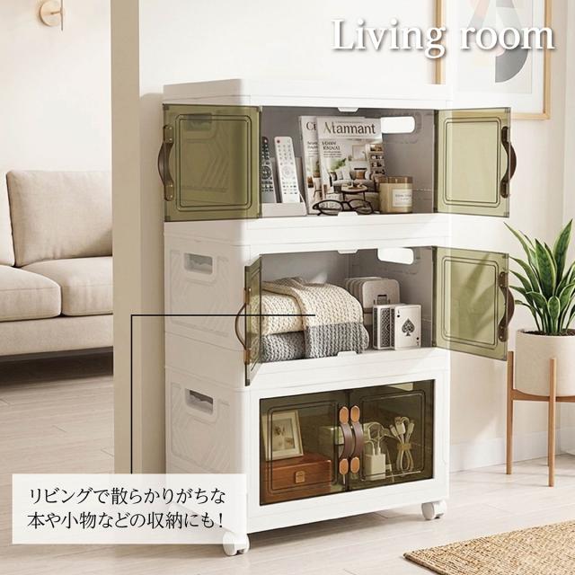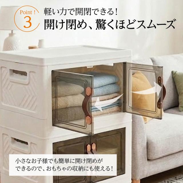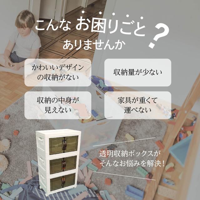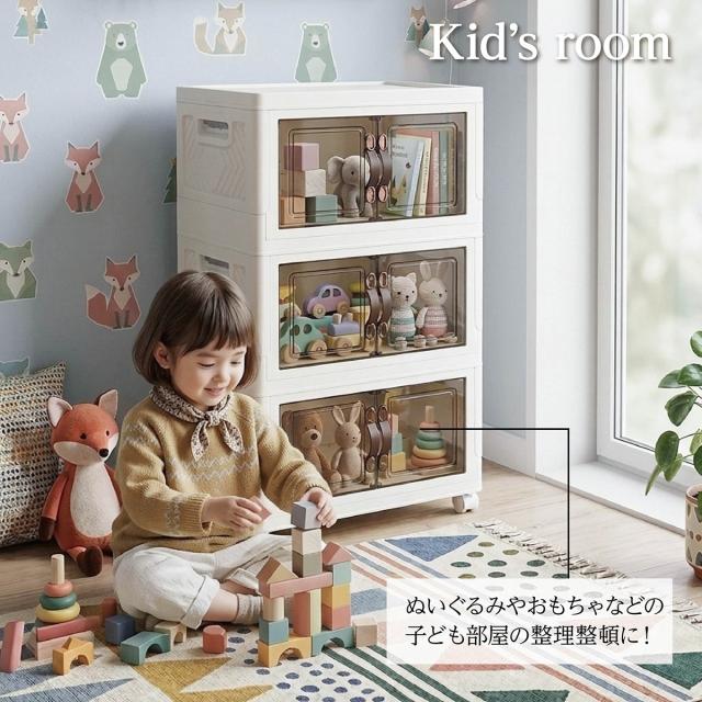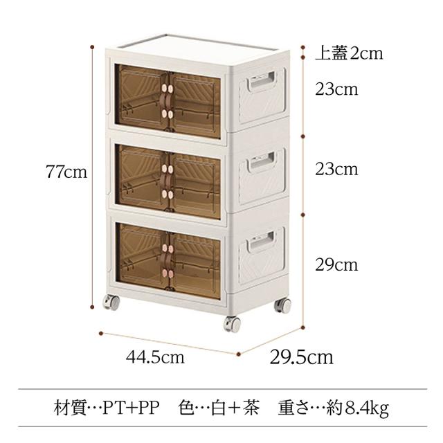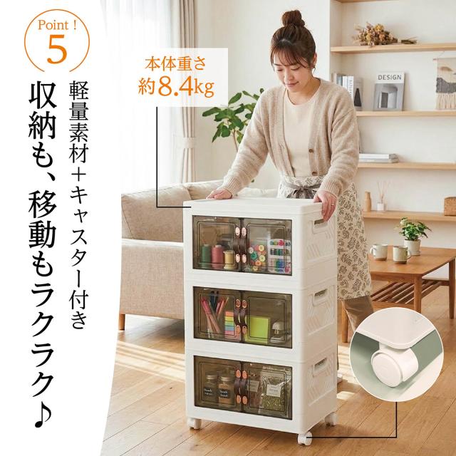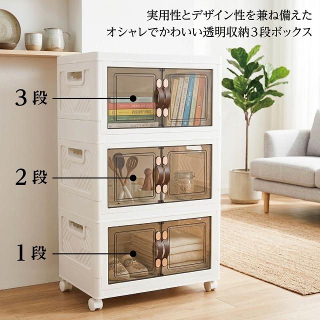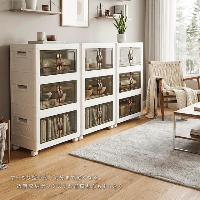 収納ボックス 折りたたみ 3個セット 3段 ボックス 収納ケース 前開き 中身が見える キャスター付き コンテナ 収納棚 扉付き おしゃれ tomei-box01