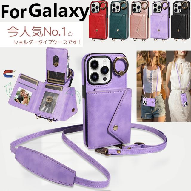 galaxy a54 5g ケース ショルダー リング付き 背面保護 Galaxy A54 5G SCG21 ケース かわいい 革 耐衝撃 ギャラクシー A54 A53 A52 A32 S23 S22 S21 ショルダーケース ぎゃらくしーa54 カバー スマホケース galaxy a54 おしゃれ 可愛い ストラップ付き レザー 財布型
