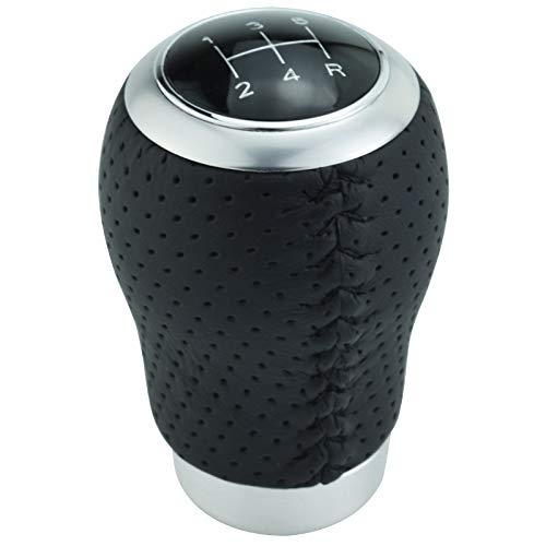 Lunsomレザー5速シフトノブカーギアシフトノブゼネラルオートマニュアル車 (黒ステッチ)