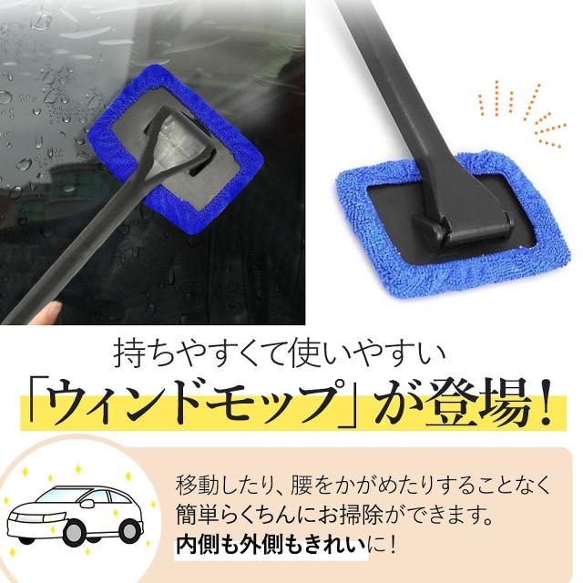 ウインドモップ 車内用 ガラス拭き マイクロファイバー 内窓用 クロス 窓 カー用品 掃除 自動車 フロント ガラス モップ 窓ふき 曇り取り 洗車 垢取り 霜取り agesugi_ssp