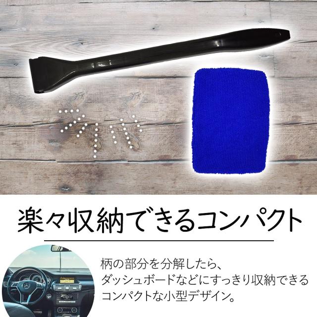 柄の部分を分解したら、ダッシュボードなどにすっきり収納できるコンパクトな小型デザイン。