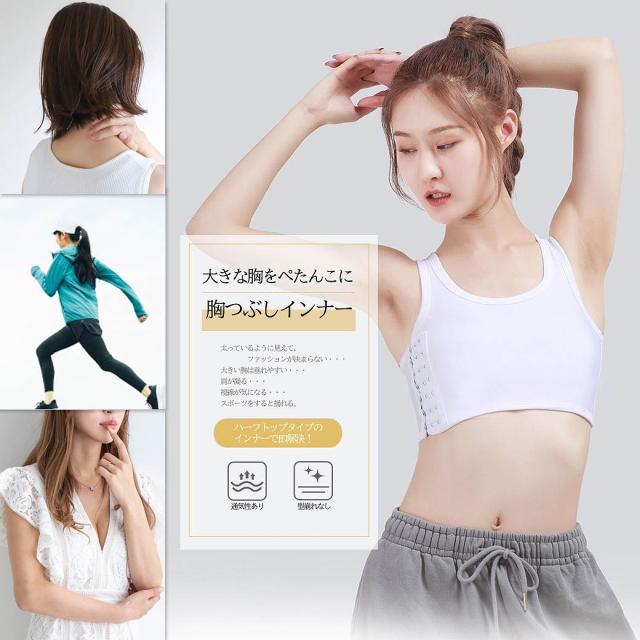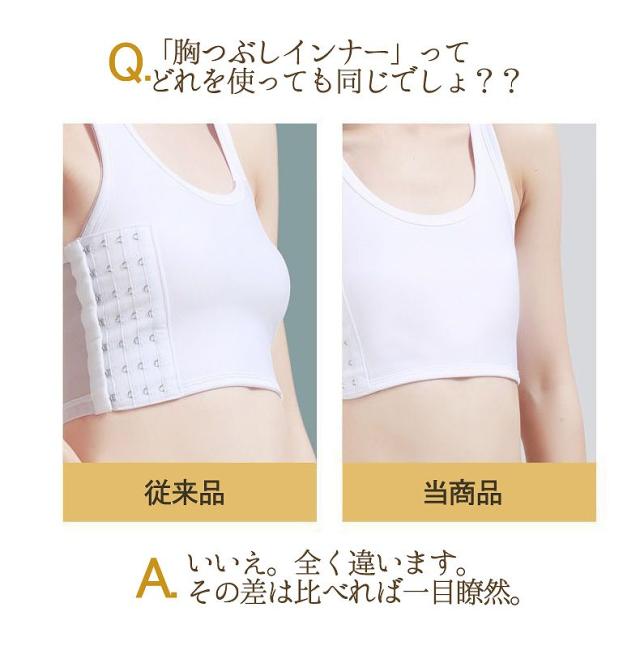 ぎゅっと引き締めて、大きな胸は小さく、小さな胸は平らに整えてくれる胸つぶしインナー。