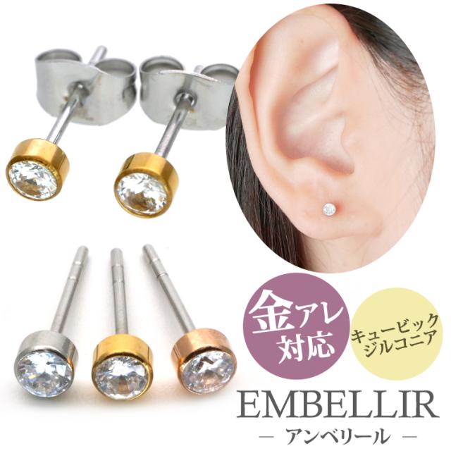 金属アレルギー対応 [EMBELLIR] ステンレスピアス ベゼルジュエルピアス スタッドピアス 両耳用 サージカルステンレス