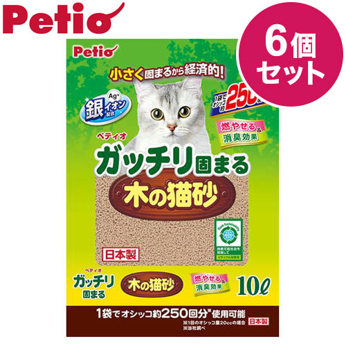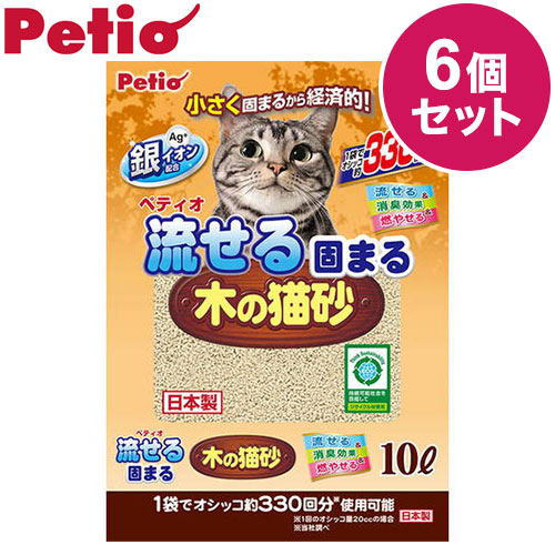 【6個セット】 ペティオ 流せる固まる木の猫砂 10L x6 60L 木砂 木の猫砂 流せる トイレに流せる 固まる かたまる 木製 木紛 国産 日本製 猫砂 ねこ砂Petio【送料無料】