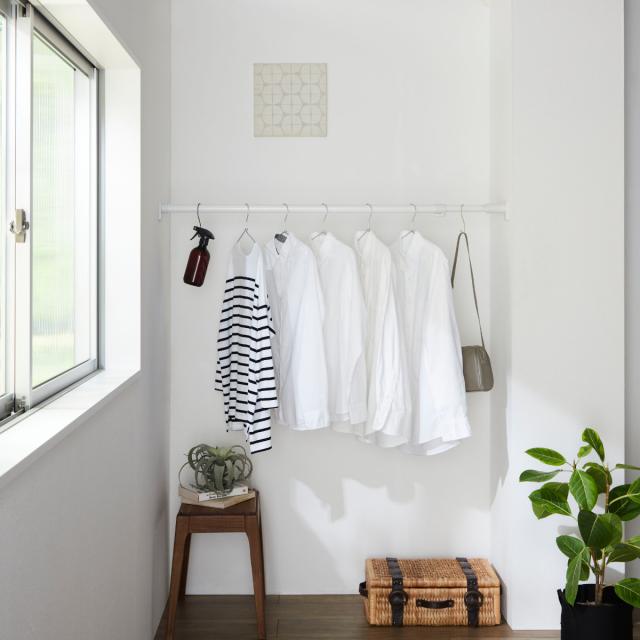 シンプルなので様々なテイストに馴染むシンプルな突っ張り棒です。マットな質感のホワイトなので落ち着いた雰囲気になっています。お家の中のデットスペースを利用して収納力をアップできるので、クローゼットやキッチン、ランドリーなど様々な場所で大活躍してくれます。
