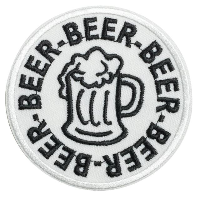中心のビールジョッキを囲むように「Beer」の刺繍が施されたビール好きにオススメなユーモアあふれるパッチ。