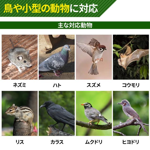 目の発光LEDの赤いライトと音で、ネズミなどの小動物や鳥を傷つけずに追い払う撃退器です。