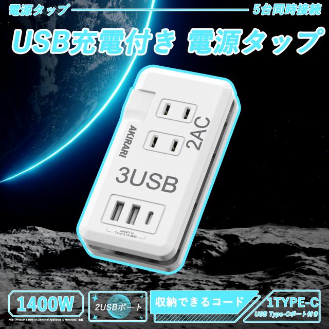 ■ USB+2Pプラグ同時使用可能/USB+正面・側面立体型コンセント/充電や各種電化製品に使用可能で便利