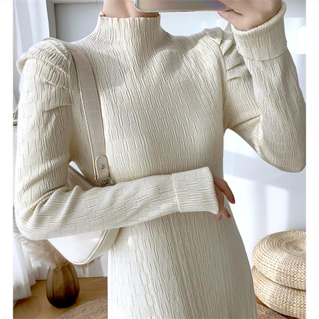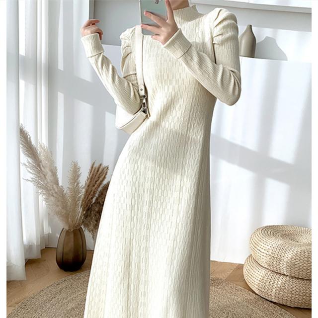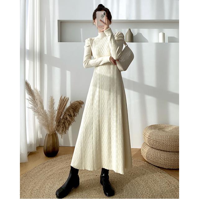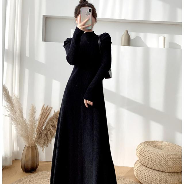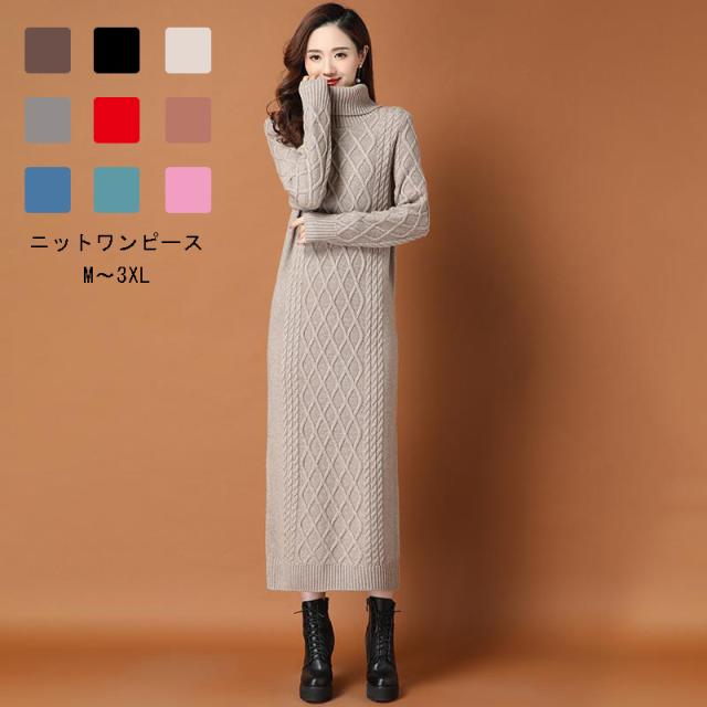 ニットワンピース 秋冬 レディース ドロングワンピース 長袖 立ち襟 フリーサイズ ストレッチ 105cm ニットワンピ