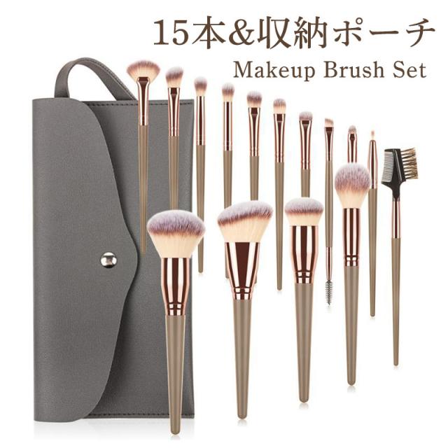 メイクブラシセット メイクブラシ 15本入り ポーチ付き パウダーブラシ ファンデーションブラシ アイブロウブラシ 美肌 斜めカッ