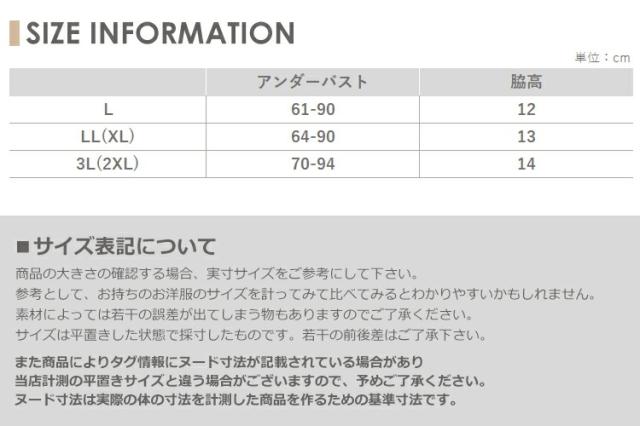 LL(XL):アンダーバスト64-90 脇高13