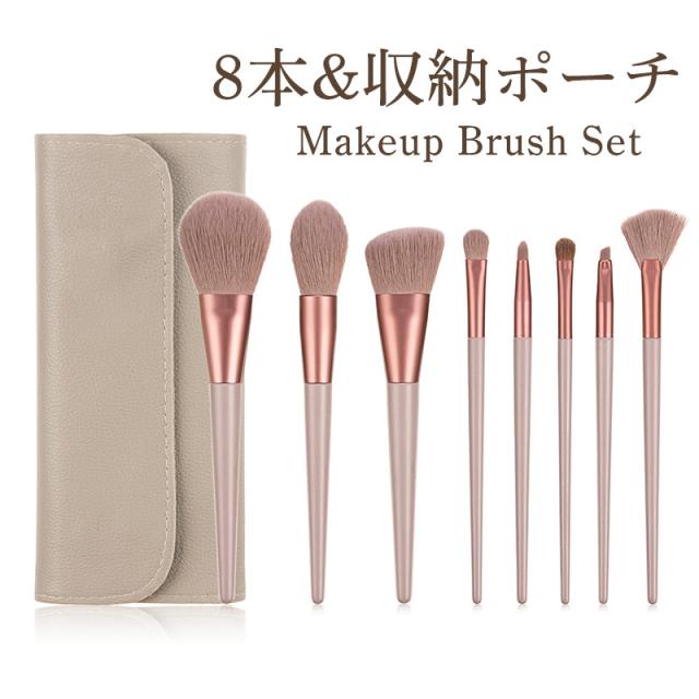 メイクブラシセット メイクブラシ 8本入り ポーチ付き パウダーブラシ ファンデーションブラシ アイブロウブラシ 美肌 斜めカット