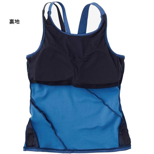 ウエスト部分にスピンドルは使用せず、フラットな仕様にすることで着衣時のごろつきを解消すると同時に、巾を広げることで体にフィットするような仕様にしました。足さばきのいい2.5分丈。サイドにめくり上がり防止のスナップ付き。差し込みタイプのカップ付き。UVプロテクト(UPF50+、紫外線カット率95%以上)機能付き。