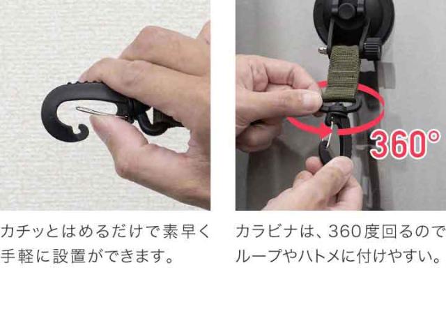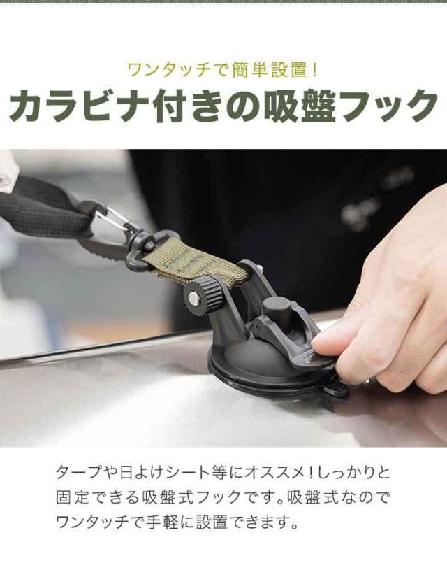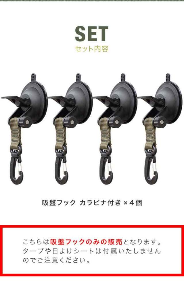 FIELDOOR カーサイドタープ用 吸盤フック 4個セット 自在フック カラビナタイプ 日よけ タープ すだれ オーニング用 吸盤式 追加フック 固定 取り付け金具 ルーフテント サイドタープ 日除け アウトドア 車中泊 テント 簡単設営 1年保証 送料無料