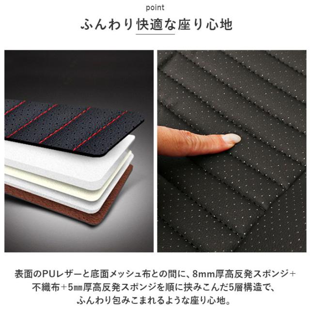 | 商品説明 | ・愛車の座席シートにすっぽり被せて、キズや汚れからガード!取り付け簡単「自動車用シートカバー」 【シート座面にピタッとフィット】 ・運転席や助手席シートの座面にピタッとフィットする立体デザイン。座面サイドまでぐるっと覆って、新品同様のシートに変身!(※本製品は、運転席・助手席用のシートカバーです。) 【耐久性に優れたPUレザー素材】 ・シートカバー全面に、摩擦に強く耐久性に優れたPUフェイクレザーを使用。生地の表面の細かな通気孔が湿気を逃がすので、長時間のドライブでも蒸れずに快適。 【ふんわり快適な座り心地】 ・表面のPUレザーと底面メッシュ布との間に、8mm厚高反発スポンジ+不織布+5mm厚高反発スポンジを順に挟みこんだ5層構造で、ふんわり包みこまれるような座り心地。 【取り付け方は簡単3ステップ】 1.シートカバー後部と側面サイドを繋ぐ連結クリップを外し、背面側の2本のベルトクリップを座席シートのすき間奥まで差し込む。 2.座席シートの背面側から連結クリップを取り出し、シートカバー側面サイドのベルトクリップのゴムを伸ばして連結する。 3.シートカバー前面のゴムループに付属の金属クリップを取り付け、座席シート底面のフレームに引っ掛ければ完成! 【便利なフロントポケット】 ・シートカバーの前面には、スマホやカードケース等の小物の収納に便利なオープンポケット付き。 【シンプル&シックなカラー】 ・車内のインテリアにすっきり馴染むシンプル&シックなカラーバリエーション。まるで本物のレザーのようなリッチで滑らかな肌触りも魅力のひとつ。 |