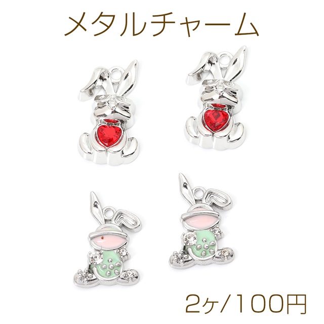 メタルチャーム ラインストーン付きチャーム エポチャーム 兎 ロジウム