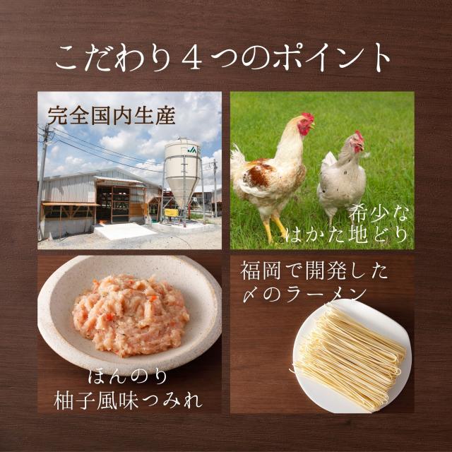 福岡県が水炊きに合う鶏肉として開発した「歯ごたえが良く、旨味の強いはかた地鶏」と ラーメン用に開発されたラー麦を使用した「もちもちのラー麦細麺」のセットです。