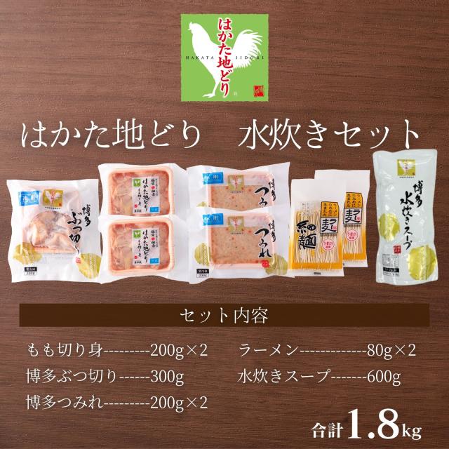 ギフト はかた 地どり 水炊き 大満足 セット 1.8kg 3〜4人前 国産鶏 博多 地鶏 肉もも ぶつ切り つみれ つくね スープ 麺 鍋 お鍋 なべ 送料無料 冷凍 冷凍食品 プレゼント 贈り物 贈答 お祝い 御祝 お取り寄せ グルメ 水たき 出汁 旨味 美容 国内生産