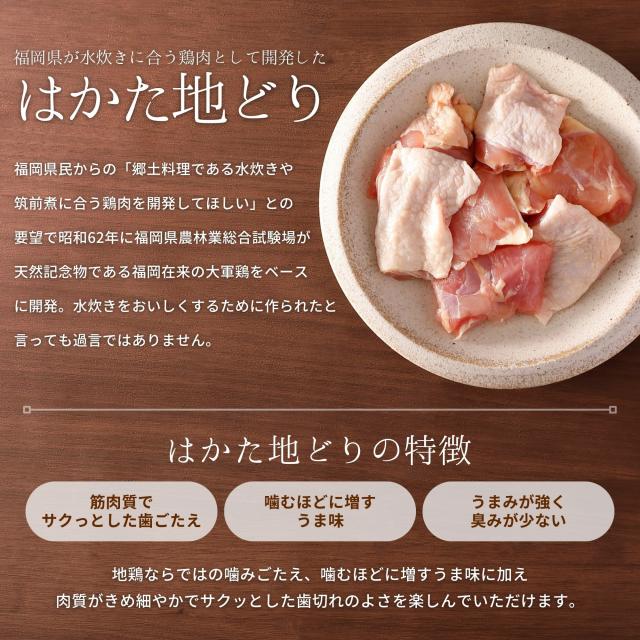 福岡県が水炊きに合う鶏肉として開発した「歯ごたえが良く、旨味の強いはかた地鶏」と