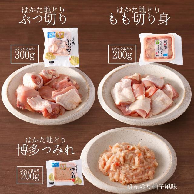 お肉はぶつ切り、もも切り身、つみれの3種類!急速凍結しているため鮮度も抜群。