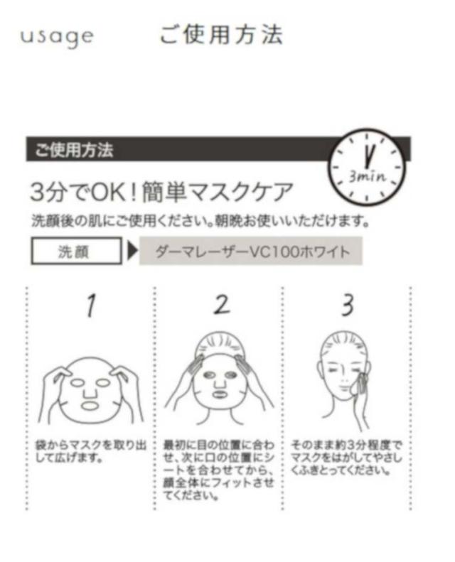 3.そのまま約3分程度でマスクをはがして優しくふきとってください。