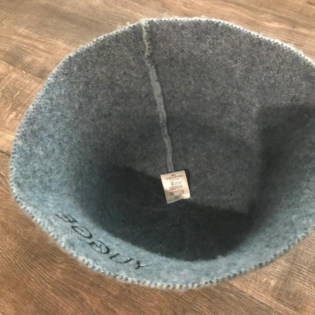 ウール糸と形態安定ポリエステル糸を編んでフェルト化させたチューリップハットです。
