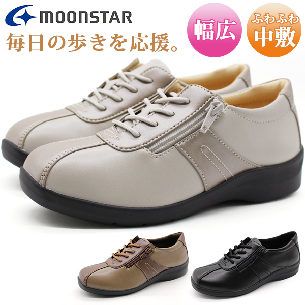 スニーカー レディース 靴 シューズ コンフォート 幅広 中敷 ワイズ 4E 外反母趾 ファスナー チャック クッション性 屈曲性 防滑 軽い 快適 軽量 柔らかい お散歩 お出かけ 買い物 MOONSTAR ムーンスター EVE 195 イブ