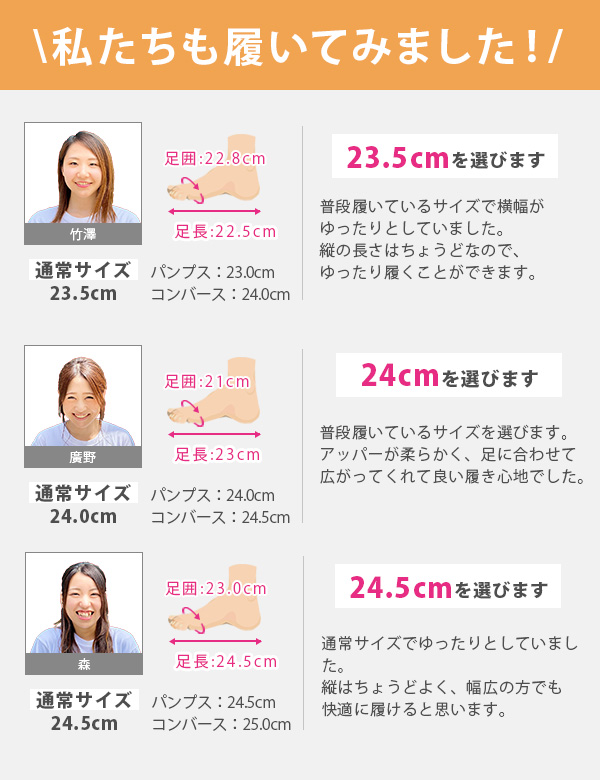 取り扱いサイズ:22.5cm 23cm 23.5cm 24cm 24.5cm 25cm