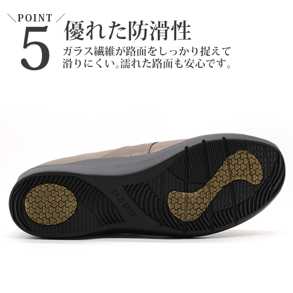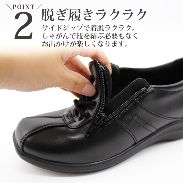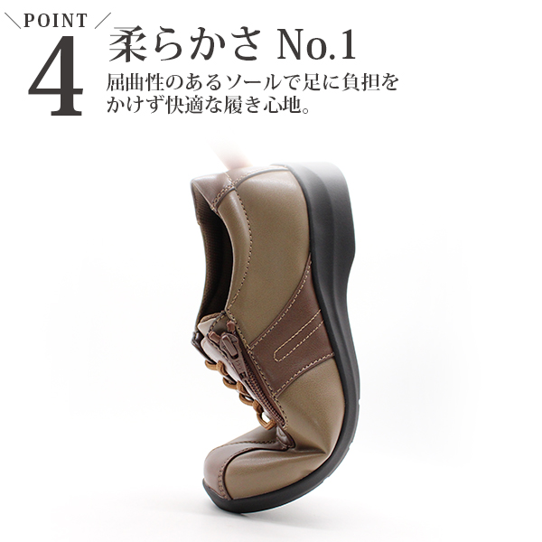 アクティブなミセスの足元をサポートする「ムーンスター イブ」のコンフォートシューズです。ゆったりやわらかな履き心地の「やわらかさNo.1宣言」シリーズです。外側ファスナー付きで、脱ぎ履きがしやすく、軽量性にも優れています。