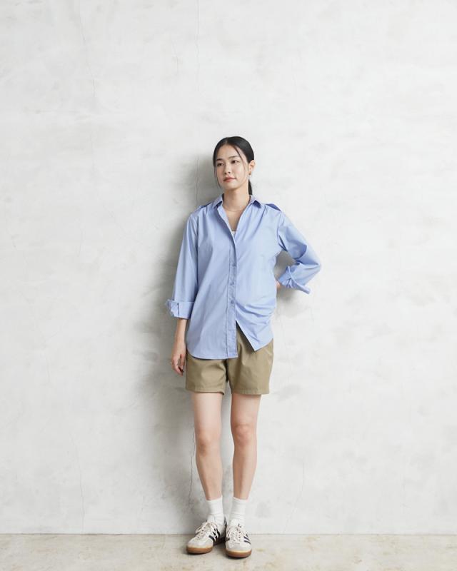 T/Cブロードという目の詰まった平織りの生地が使用されています。薄手の生地ながら、緻密に織られていることで耐久性が高く、ハリがあります。洗濯を繰り返しても生地がへたりにくく、滑らかで肌触りが良く、高級感のある上質な素材です。コットンとポリエステルが使用された素材は綿の特性である吸水性と肌触りの良さと、ポリエステルの特性であるシワになりにくく速乾性に優れている特徴を持っています。