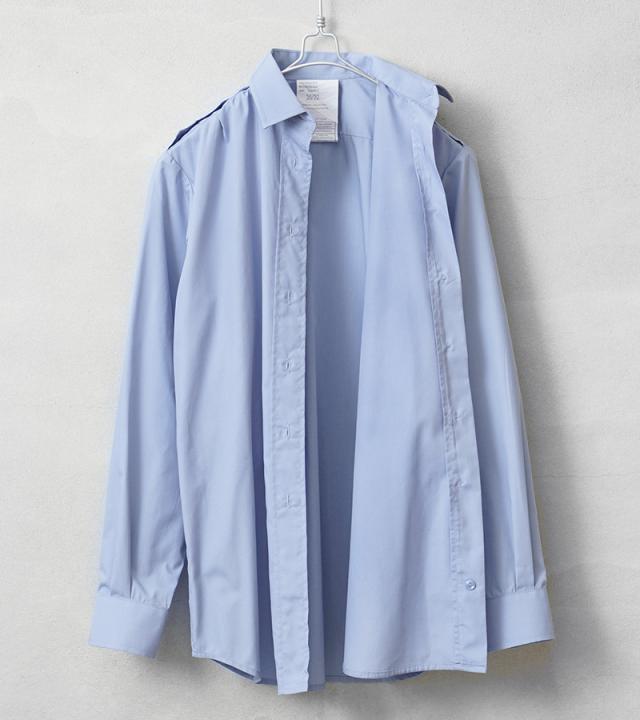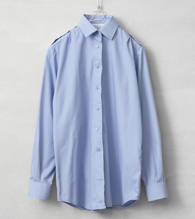 実物 USED イギリス軍 レディース ROYAL AIR FORCE(RAF)ロングスリーブ ワーキング ドレスシャツ ペールブルー【Cx】【I】|長袖シャツ かわいい おしゃれ 古着 ファッション キレイ目 カジュアル シンプル 無地