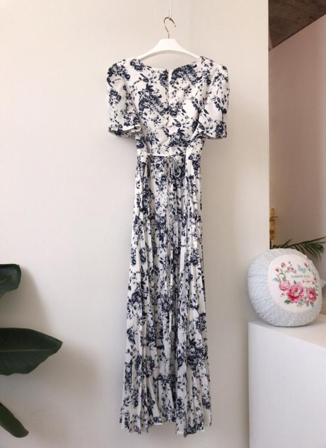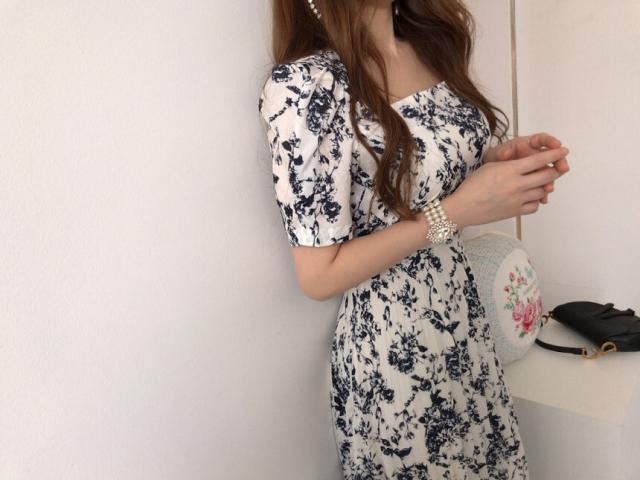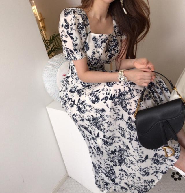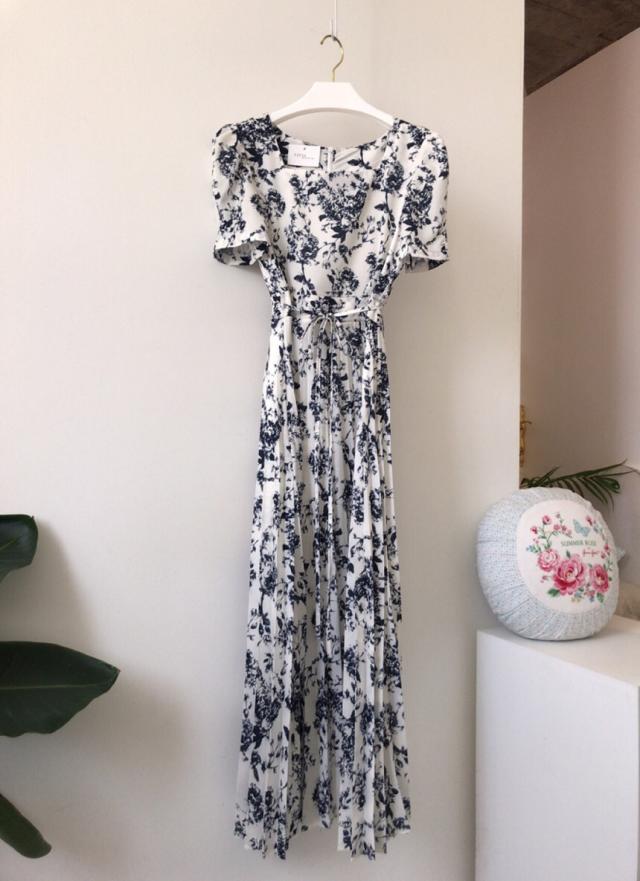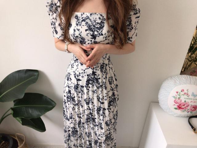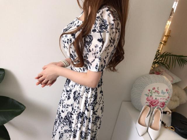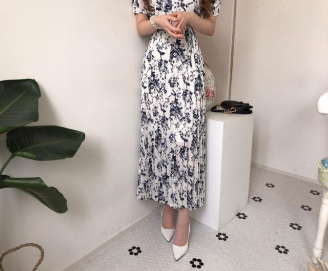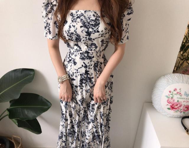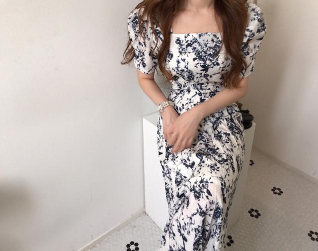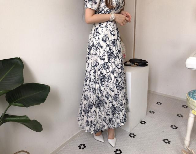 ワンピース レディース 花柄ワンピース S M L ホワイト 白 ブルー 青 大人カラー プリーツ 春 夏 花柄 花 フラワー フローラル 半袖 パフスリーブ スクエアネック ロング丈 ロング マキシ丈 マキシ アンクル丈 膝下 美ライン 美シルエット スタイルアップ ハイウエスト 脚長 着やせ 体型カバー フェミニン ナチュラル きれいめ きれカジ カジュアル さわやか ガーリー キュート 大人 大人可愛い 存在感 主役級 デート お出かけ 休日 シック 上品 エレガント エレガンス 清潔感 清楚 定番