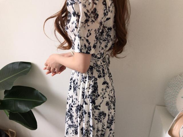 エレガントな花柄が上品な雰囲気のワンピース。